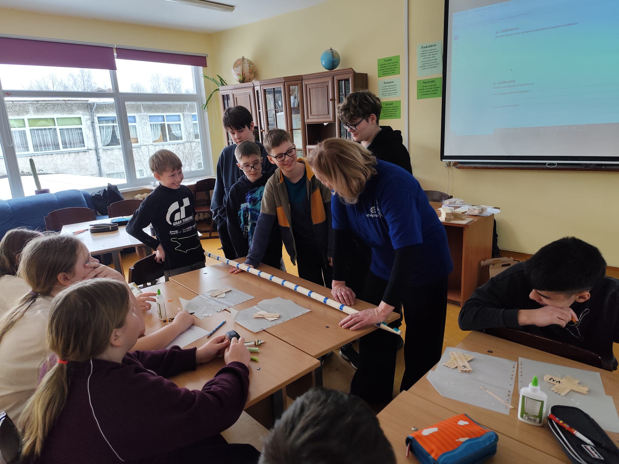 5.6. klašu izglītojamie apguva tēmu Kā paštaisītas līmes īpašības atšķiras no epoksīda līmes īpašībām?. Skolēni padziļināja izpratni par materiāliem, to īpašībām un izmantošanas iespējām, īpašu uzmanību pievēršot dažādu līmju salīdzinājumam. Praktiskajā darbā viņi testēja pašu izveidotos materiālus un analizēja iegūtos rezultātus.
